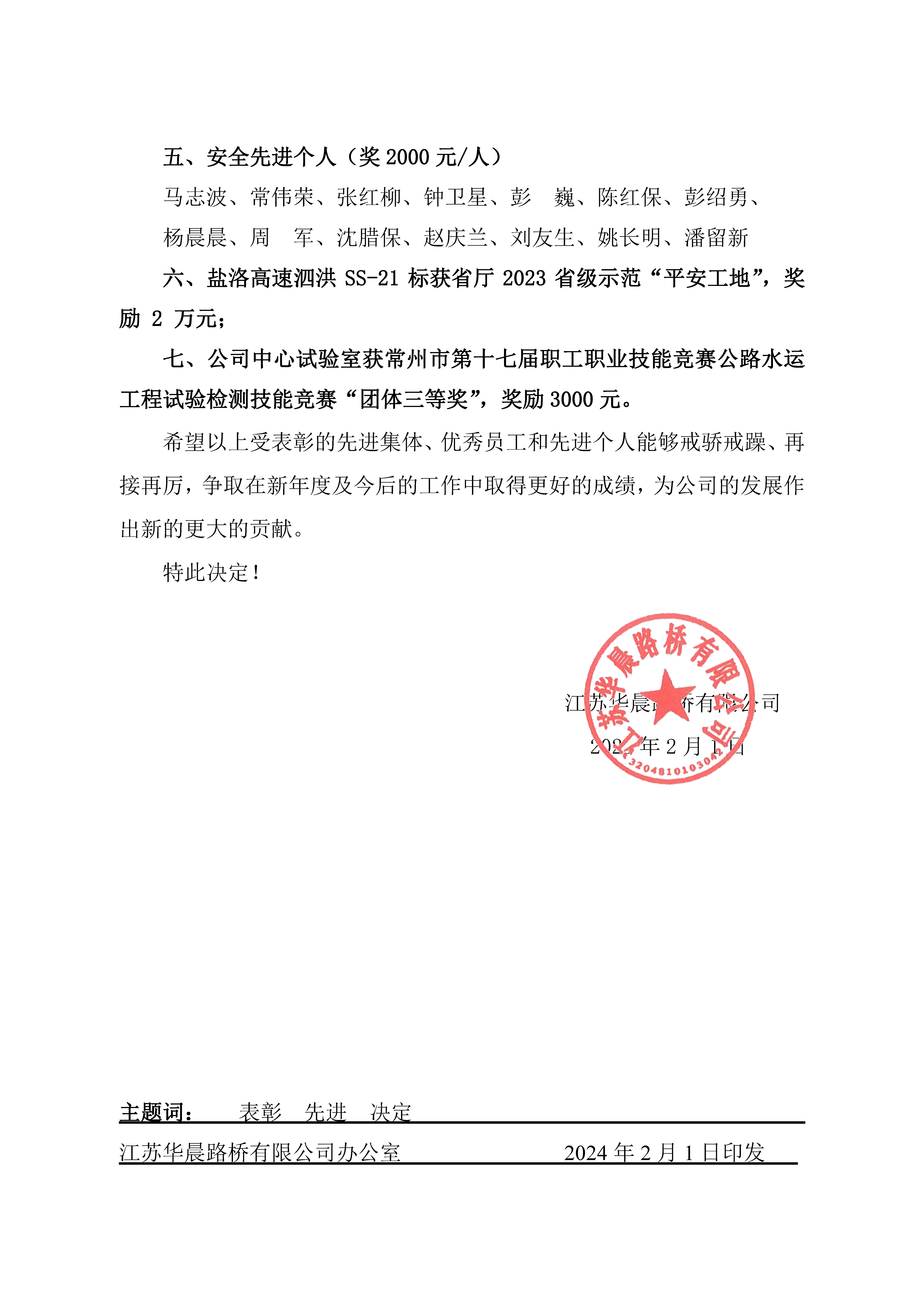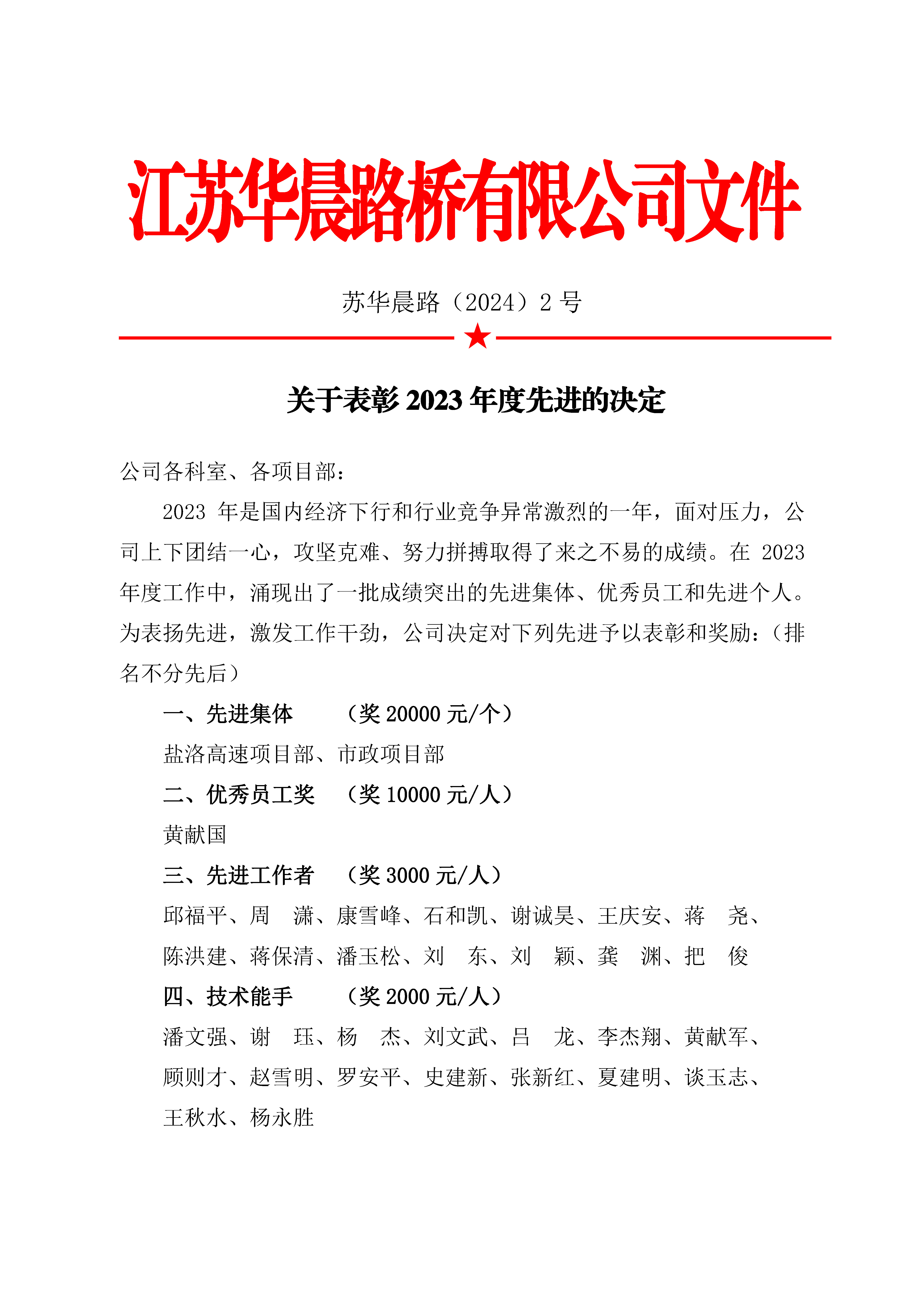 关于表彰2023年度先进的决定